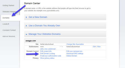 - Unlock Domain -- Click Edit Domain Locking link and make sure your domain is unlocked.