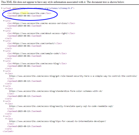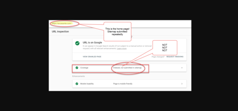 I do want to explain the reason you are seeing indexed NOT submitted in site map is because the url you are submitting is https://accessrite.com/ and your site map is referencing the url that contains the www as shown highlighted below. However google is still able to relate this to your home page because both urls do reflect your index page but technically they are 2 different urls in googles eyes.