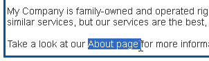 2) Go to the page with text you'd like to use. Using your mouse, double-click inside the text box and highlight the text that you want to be a link. Here's an example of selecting text: