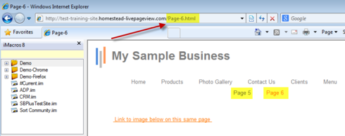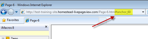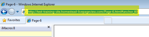 2) After you publish the page with the anchor link, pull up the live website in a new browser window. You'll need to click on the link that you just created so that it moves you down the screen to where the anchor was placed. In my example I created a page named "page 6". Notice the URL highlighted in yellow