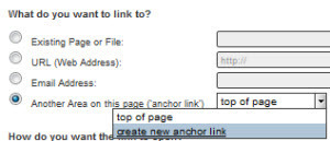 Anchor links are a special type of link that allow you to link to a specific part of a page. This can be very handy when you have a page or pages with a very large amount of content.