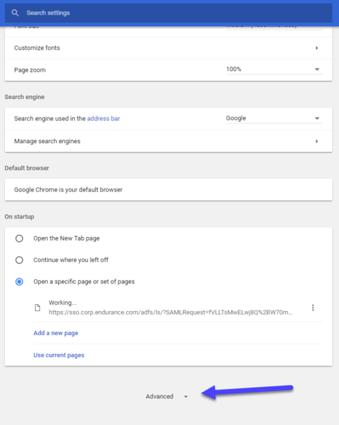 1) Go to Settings and scroll down to the bottom and click Advanced.