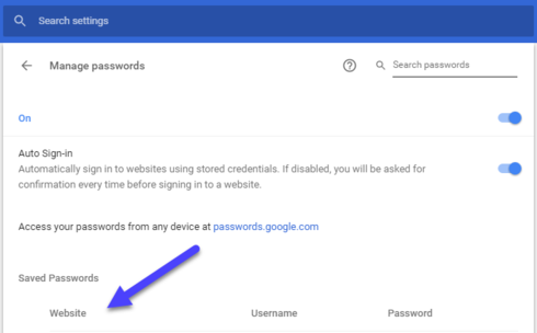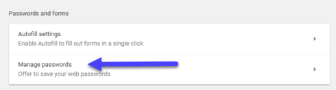 2) Scroll down to the Password section and click on Manage passwords