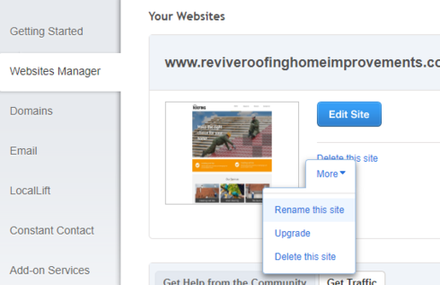 Step 3: Choose the site that is experiencing the error from your list of sites (if you have more than one) and click "Rename"